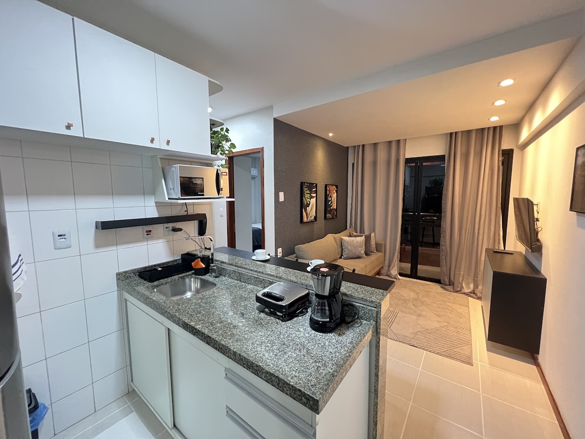 Apt. fully equipped decorated in industrial style. Perfect location, in front of a hypermarket, bank service, magazine, snack bar, pharmacy, and half a block from a traditional fair in Belém with regional foods. the apt. It is located in an easy access point to the Hangar, Basilica of Nazaré, Museum and excellent restaurants and pizzerias. The condominium with swimming pool, gym, sports courts, grills, gourmet spaces, parking included, etc.