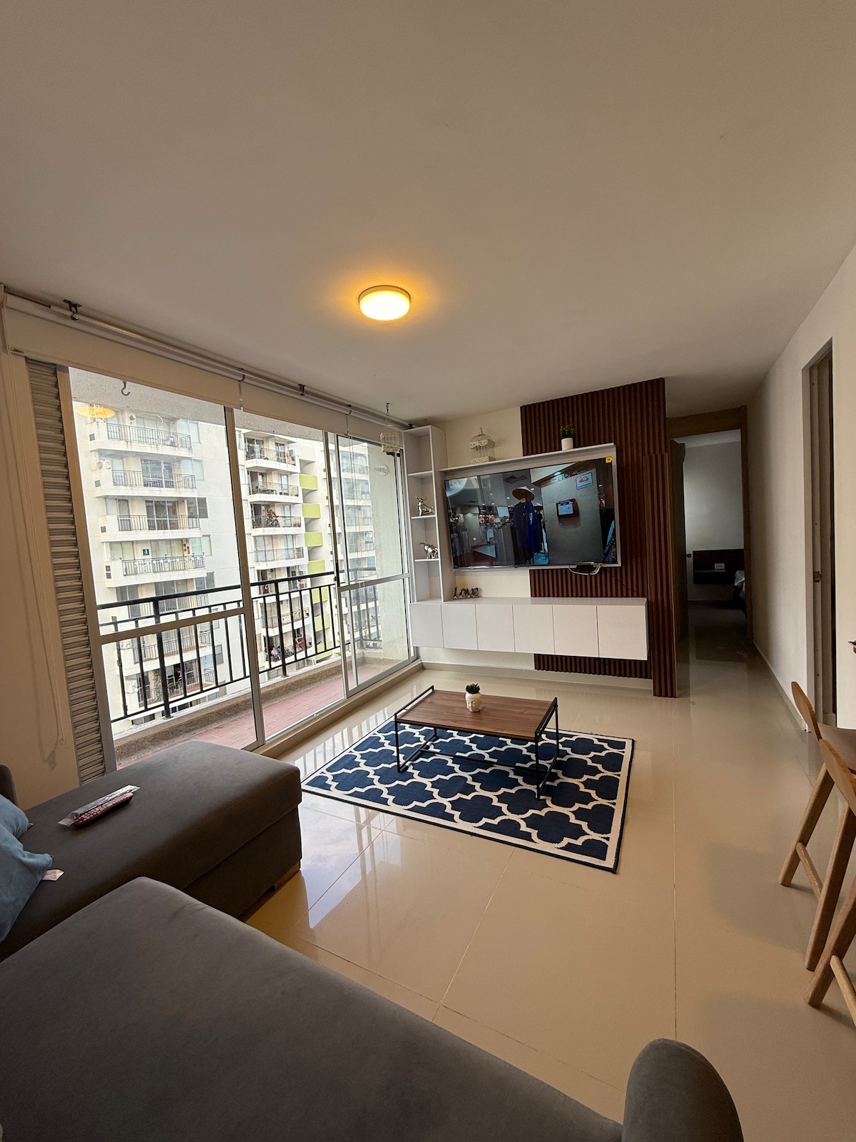 Vive una experiencia inolvidable! Acogedor apartamento en el piso 7 con ascensor, ideal para familias o grupos. Cuenta con cerradura inteligente para un acceso autónomo, parqueadero privado, balcón, aire acondicionado, wifi y juegos de mesa para una estadía más agradable. El conjunto ofrece piscina (con horarios de la administración), gimnasio, zona BBQ y parque infantil. Somos pet friendly 🐾. Totalmente equipado para que disfrutes comodidad, descanso y diversión en un ambiente familiar.