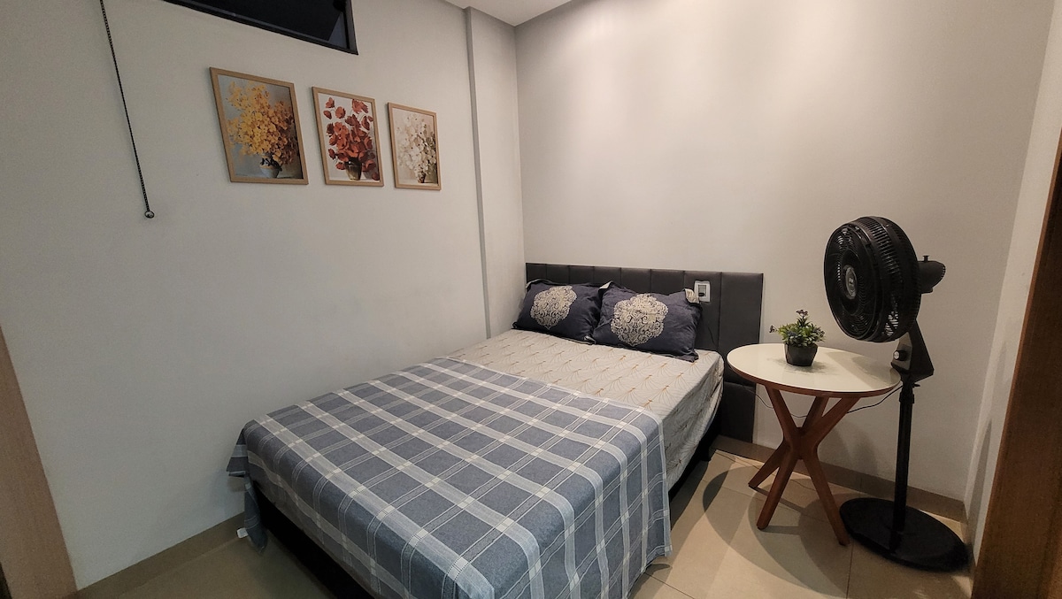vc vai estar perto de tudo ao ficar neste lugar bem-localizado, limpo e aconchegante. mercado autonomo disponível 24 horas internet rápida, elevador, cama confortável,chuveiro excelente ar condicionado no quarto principal condomínio com portaria 24h com academia, brinquedoteca, área lazer, piscinas,quadra de esportes. vaga de garagem coberta self check in com fechadura eletrônica Conta com fogão, Airfryer,geladeira, cama de casal,tv e dois quartos