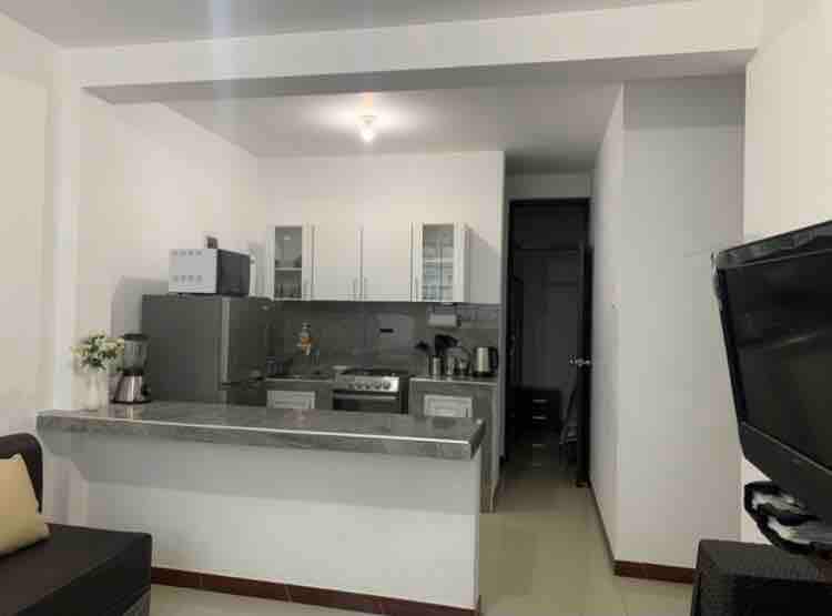 Moderno y acogedor departamento de estreno ideal para parejas o viajeros solos. Cuenta con 1 habitación con cama queen y ropero empotrado, sala cómoda con Smart TV y escritorio, cocina equipada con electrodomésticos modernos y baño completo con agua caliente. Un espacio funcional y confortable, perfecto para una estadía práctica y relajante.