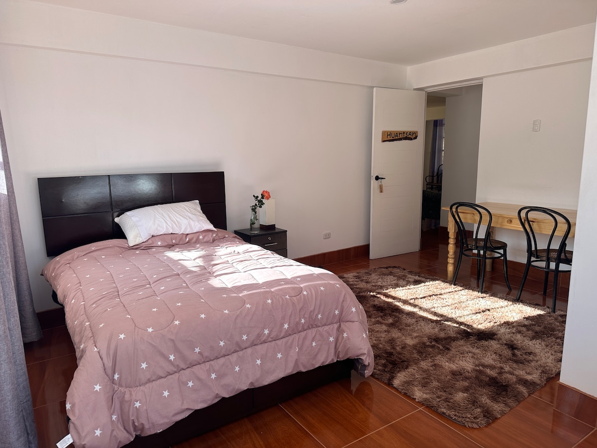 Disfruta de la la comodidad de 1 habitacion amplia habitacion . con excelente ubicación (a 12 minutos caminando y 4 minutos en carro de de la Plaza de Armas) ; cálida, acogedora, cuenta con 1 baño privado, con agua caliente las 24 horas , smart tv 35', cable premium, Wi-Fi.. harán muy agradable tu estadía. Te brindamos útiles de aseo y recojo a la estación de bus, vendre a darte la bienvenida y a recibirte con un cálido abrazo,