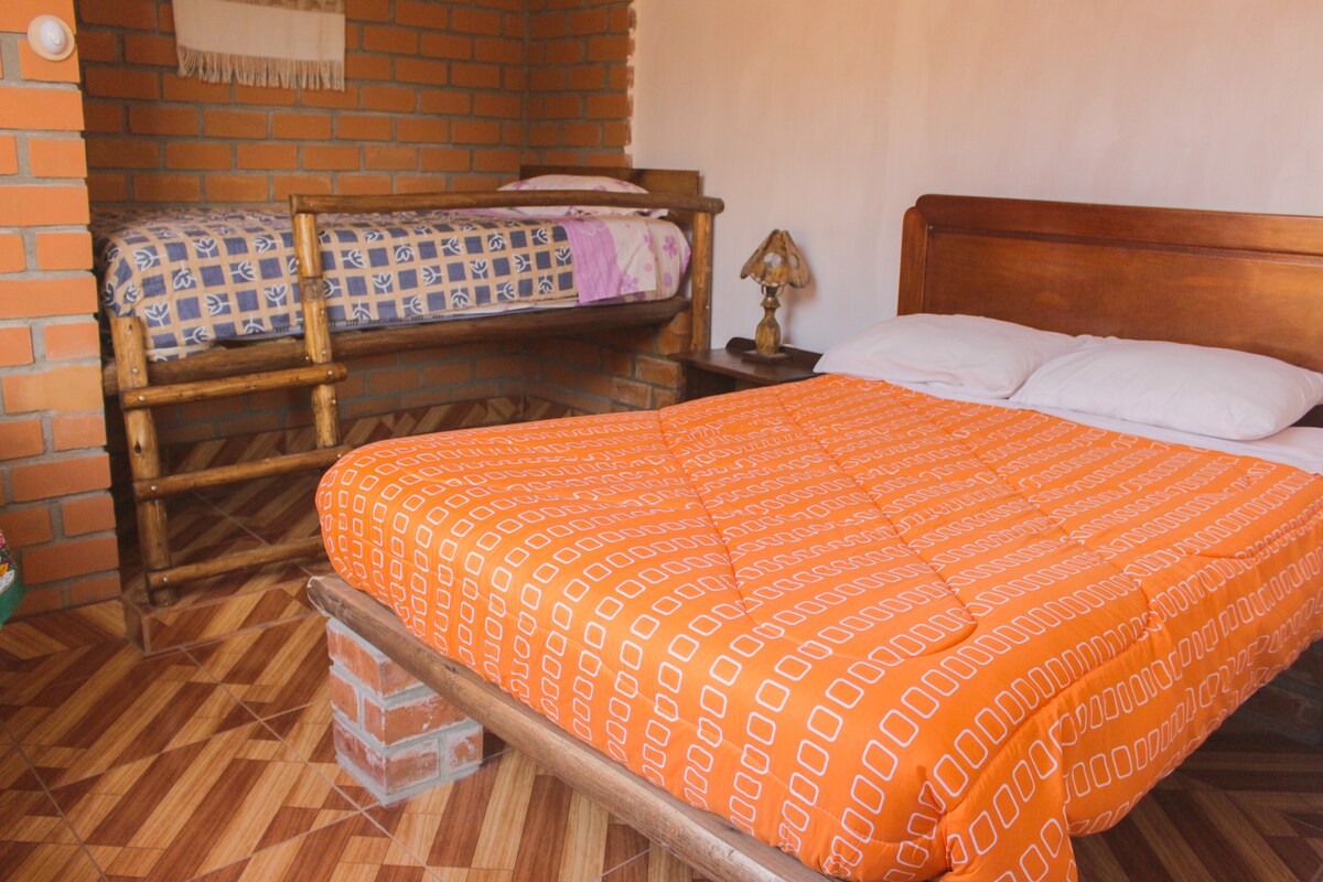 Departamento dentro de Hospedaje Los Capulies con vista a Los Andes. Cuenta con dos habitaciones: una habitación con cama matrimonial y cama simple y otra habitación con camarote. Cuenta con Kitchenette y sala amoblada.