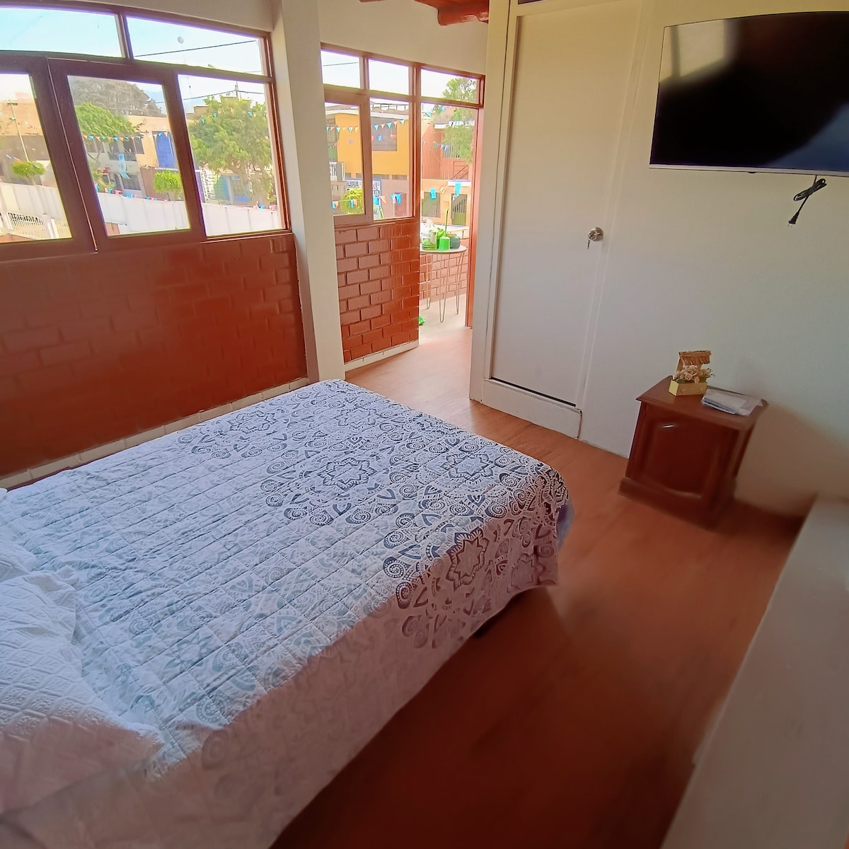 Disfruta de la sencillez y la tranquilidad en un lugar céntrico, llega a la plaza de HUARAZ en 1 minuto caminando, cerca a bancos, markets, farmacias, restaurantes, diversión en inmediaciones. Las habitaciones cuentan con: - Baño privado, ducha caliente 24 horas sistema a gas y solar - Smart TV, para tu diversión. - Wifi de alta velocidad - A tu llegada encontraras: toallas, papel y jaboncillos. - Agua caliente en Termos para mates de coca y otros.
