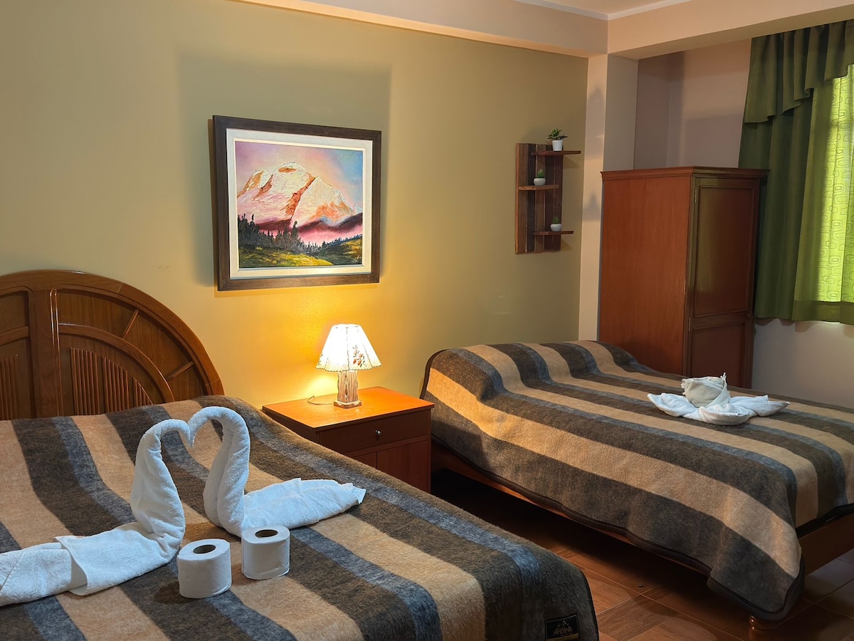 Casa Hospedaje , nuestras habitaciones cuentan con baño privado, agua caliente, Tv con cable y Wifi estamos cerca a ESSALUD y al Gobierno Regional de Ancash, zona tranquila a 15 minutos del centro de Huaraz.