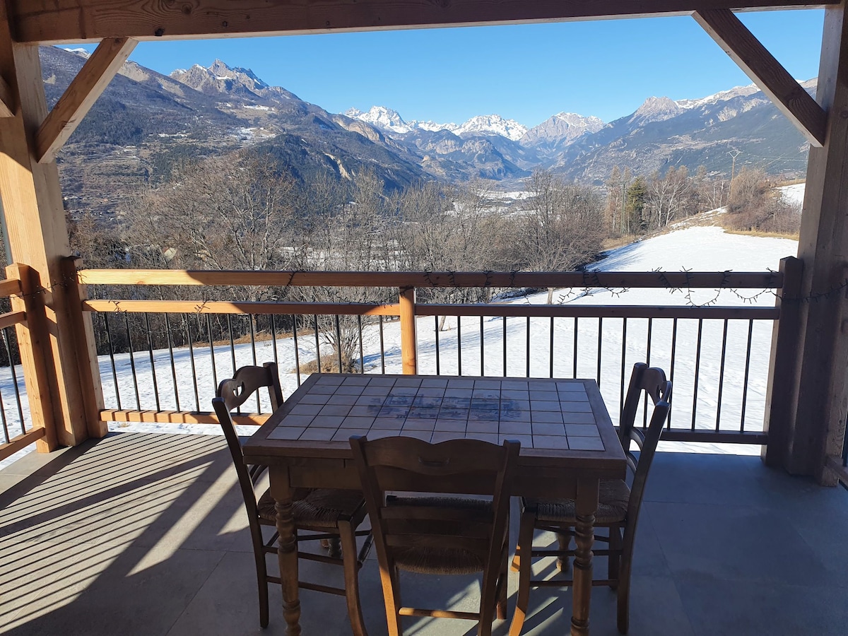 Located on the heights of the village of Réotier at 1100m above sea level. You will appreciate this 116m² wooden chalet for the view and comfort. It is perfect for families (with children). The chalet is in a very calm environment. You will have a breathtaking view of the Durance valley, the Queyras mountains with a thousand hikes, the ski resorts of Vars and Risoul, the Vauban stronghold of Mont-Dauphin (listed as World Heritage by UNESCO) and the village of Guillestre.