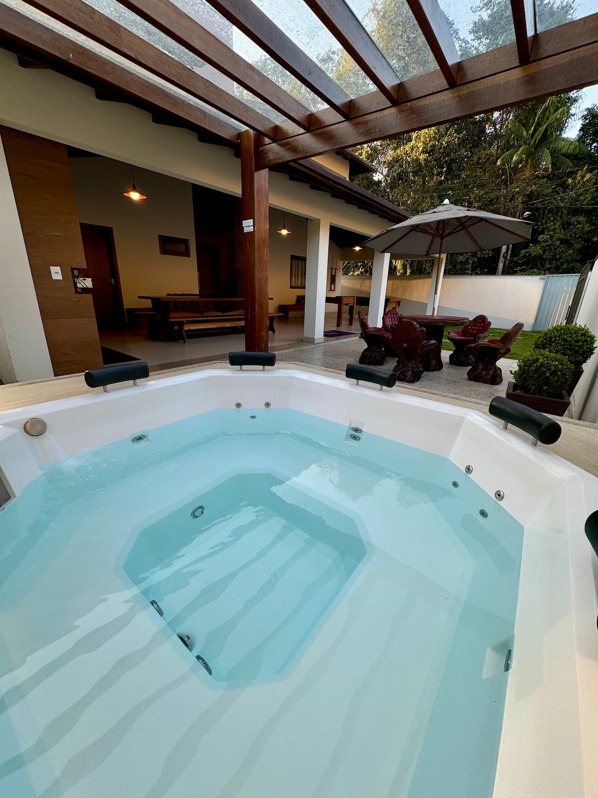 Relaxe neste lugar único e tranquilo! - Frente ao mar com acesso direto á praia Setiba Pina. Piscina exclusiva. - 5 Quartos: 1 Master Suite, todos com Ar Condicionado. 2 Banheiros sociais. - Churrasqueira, área gourmet. - Garagem 2 carros e mais espaço para estacionar na frente da casa (monitorado por cameras). - Pertinho da Praia de Setiba, águas calmas. E Setibão para surf. Aproximadamente 10km do centro de Guarapari. - Trilha para o Mirante/Cruzeiro de Setiba na rua da casa.
