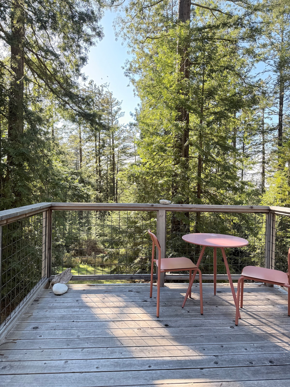 Eagle's Nest Treehouse Farm Stay is a tranquil, secluded, luxurious, romantic wilderness experience in a private forest on a 400 acre working ranch. Thirty feet above the forest floor you are nestled in a gorgeous, well-appointed suite of 1,000 year old polished redwood, with bathroom and amazing copper/glass forest-view shower. Explore hiking trails through the forest and learn about ranch operations (Highland cattle, goats and ducks). See guest comments in the space description.