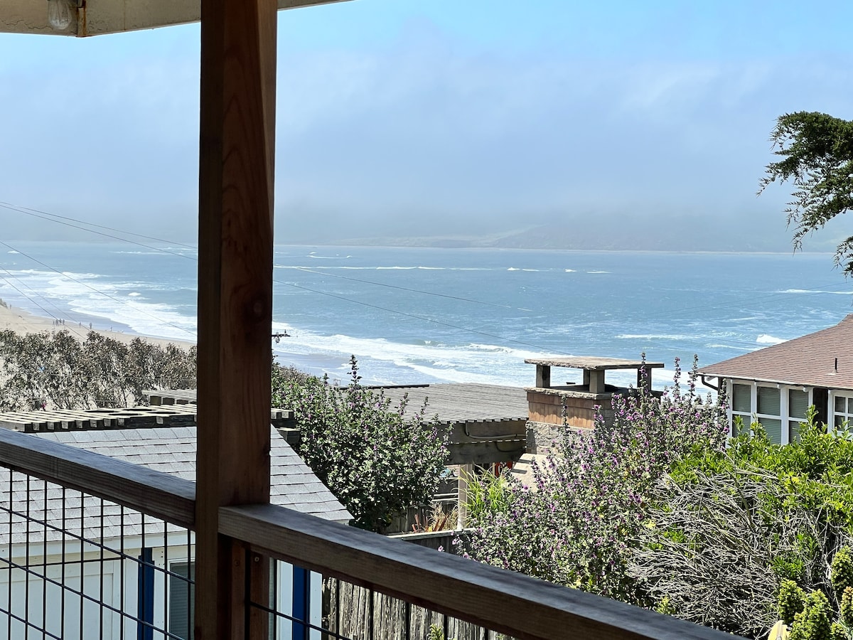 Casa Buena Vista is situated on a cliff and has spectacular views of Irish Beach and the Pacific Ocean. Floor-to-ceiling windows in the bedrooms and living room and an open floor plan on the main floor make you feel like you're on the beach or floating on a cloud over it. There's a hot tub that overlooks the ocean. The house is modern with beautiful furniture, funky art and a kitchen made for people who love to cook. You will never want to leave this healing, grounding, beautiful space.
