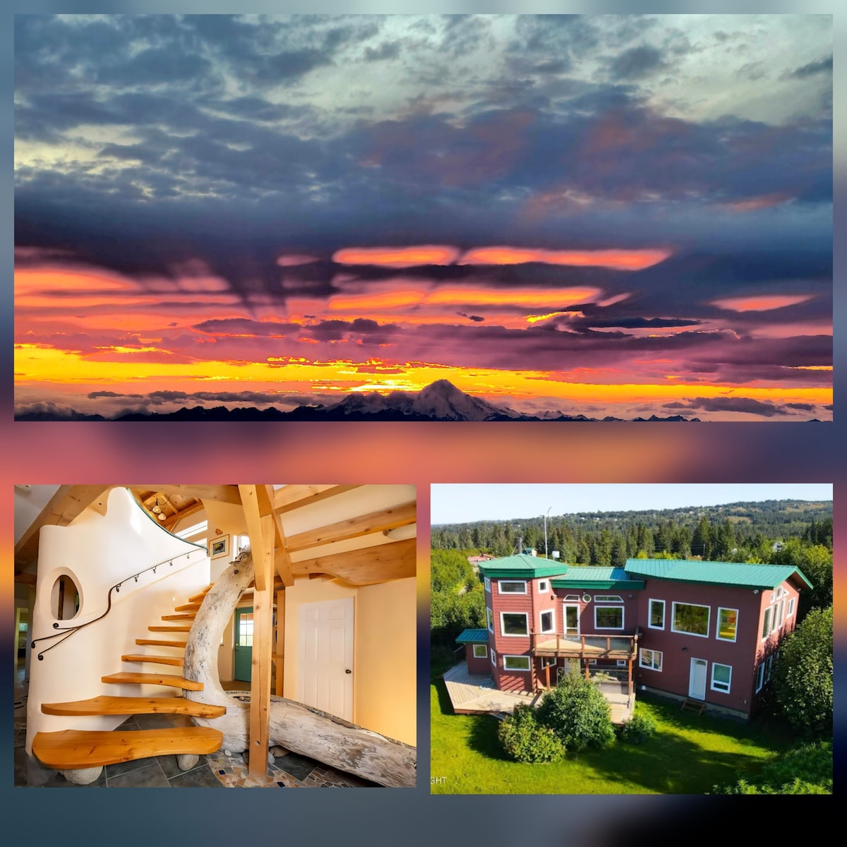 Prepare to be in awe in so many ways. Truly a magnificent home & location befitting the title of ShangriLa! Nestled in a private grove of established trees w/sweeping breath taking views of Kachemak Bay and all of Homer. Zen like immediate relaxation enjoyment time. Perfect for families or groups or those that want space and privacy. High end comforts, furniture and beautifully appointed. A private large well maintained hot tub, home theater, Satellite Big Screen TV's and Sonos sound Thru out.