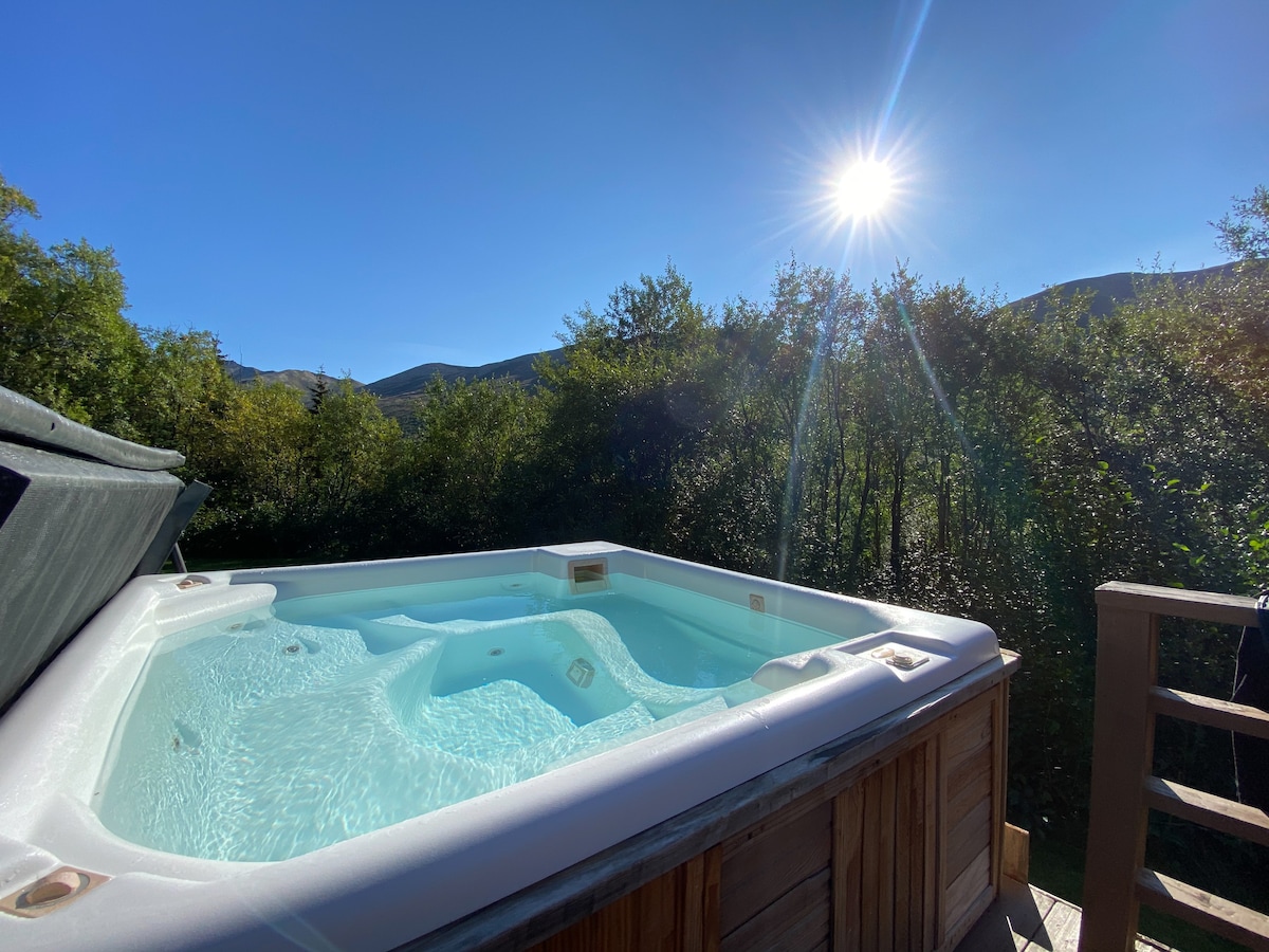 Friendly town nestled at the base of the Chugach Mountains near the end of Turnagain Arm. Walking distance to Girdwood Townsite and Alyeska Ski Resort. Ride the Free Shuttle to take in many sights of the area such as; Crow Creek Mine, Double Musky Inn, Chair 5, Alyeska Hotel, Seven Glaciers at the top of the tram and many other hiking trails to use in the vicinity. Three decks to enjoy nature and take in the sounds of the river nearby. A jetted tub to soak your feet in at the end of the day.
