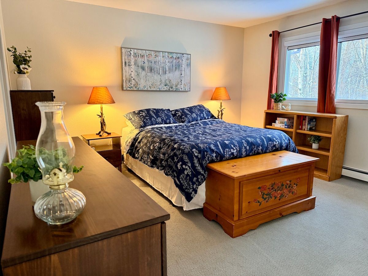 The Cozy Caribou Corner is a two-bedroom Alaska themed apartment within our spacious lodge, nestled in the forest below the Chugach Mountains in peaceful Southside Anchorage. Sleeps 7 easily. (1 King, 1 Full/Twin Bunk, 1 Queen Sleeper Sofa, and 1 full daybed. Full Kitchen, Dining, Bathroom, Shower, Tub, Washer and Dryer all included! Free Parking in front. Highspeed WiFi. Fire pit & grill. Two Smart TV's (65" & 55") w/ Netflix, Hulu, Prime, Disney, HBO, AppleTV, +more!