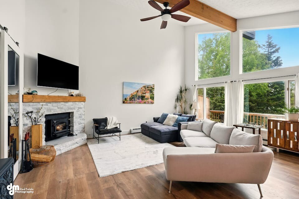 Indulge in a rejuvenating escape at our charming, 3 story, chalet haven, boasting spectacular vistas in the heart of Girdwood. Cozy up with a hot cup of cocoa by the crackling fireplace while gazing upon four magnificent glaciers and the Alyeska ski hill, all visible from our spacious two-story windows. Enjoy the luxury of having the entire home, apartment, and rustic cabin at your fingertips. Immerse yourself in the ultimate Alaskan adventure and soak in the natural beauty that surrounds you.