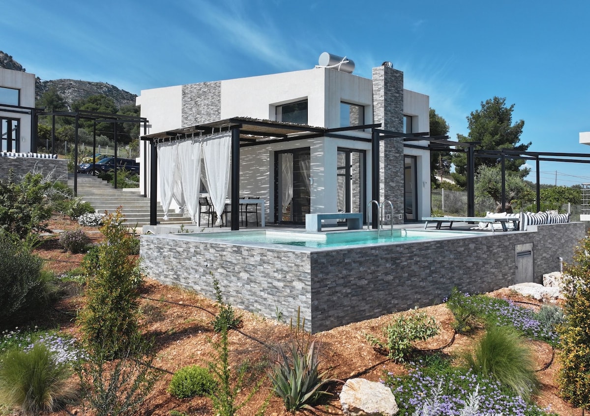 Kala Loutraki别墅:私人泳池和桑拿房I海滩