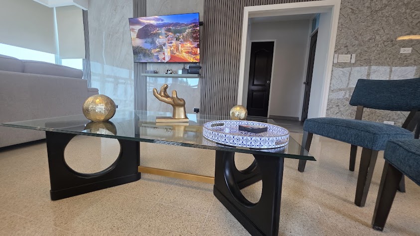 Excellent apartment in the center of the city, high floor with excellent view, full kitchen, premium furniture, large balcony, room with hotel quality sheets, 4 minutes walk from the coastal strip av balboa, surrounded by restaurants and shops, safe area for walk. Excelente apartamento en el centro de la ciudad, piso alto con excelente vista, cocina completa, muebles premium, amplio balcón, a 4 minutos caminando de la cinta costera av balboa.