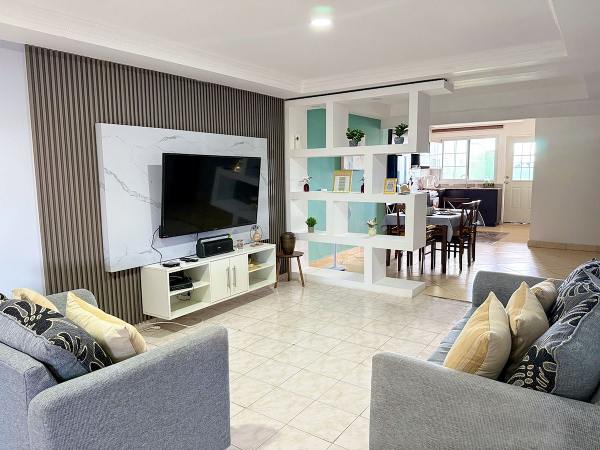 Welcome to our 3-bedroom vacation rental in Cardenas, Panama Canal area! Perfect for families, this home boasts a kitchen with quality appliances, including a 6-burner gas stove and a large fridge. Relax in stylish bedrooms, featuring a king suite with a private bath, and enjoy the lush surroundings filled with wildlife. Located next to a park with sports courts, this kid-friendly neighborhood offers outdoor fun. Experience the unique blend of comfort and nature right at your doorstep!