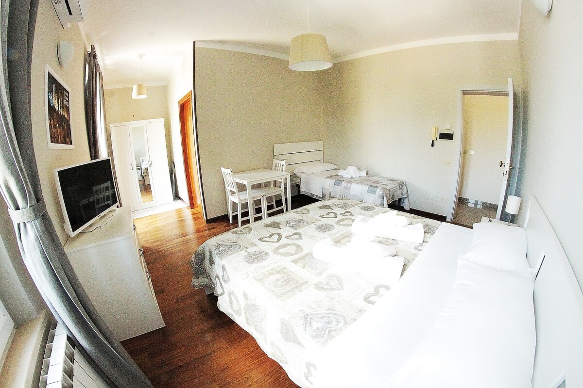 La camera ha il bagno privato esterno, la porta è appena fuori la stanza. È dotata di 2 letti singoli e si può aggiungere una culla.