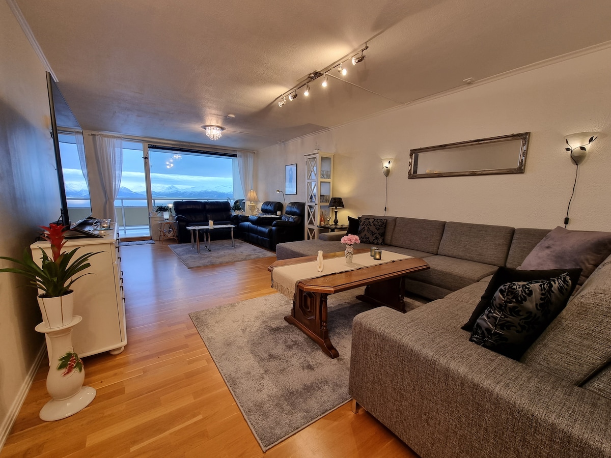 The apartment is beautiful and has the best view! It is central in Molde, on the west coast of Norway. It is 88 m2, and is suitable for 4 persons. Two can sleep in the Master bedroom, 1 in the guest bedroom & 1 on the sofa in the big livingroom. I also have 2 air mattresses if there is more than 4 people (max 8 adults+1 kid). Free parking outside and busses going. Possible to walk to the center of Molde with shopping streets, malls and restaurants with a nice view over the fjord and mountains.