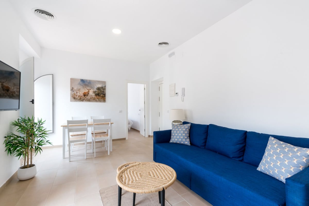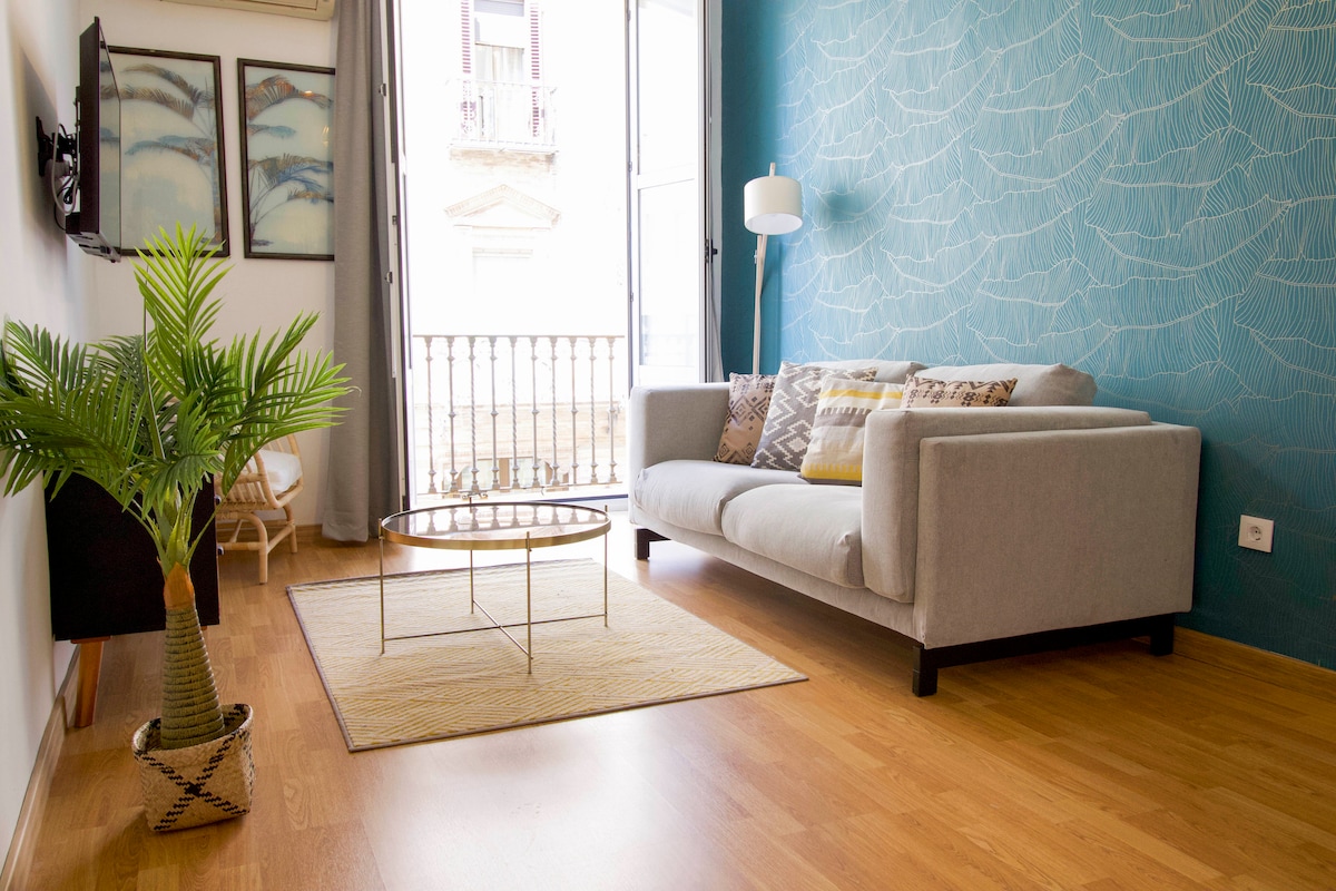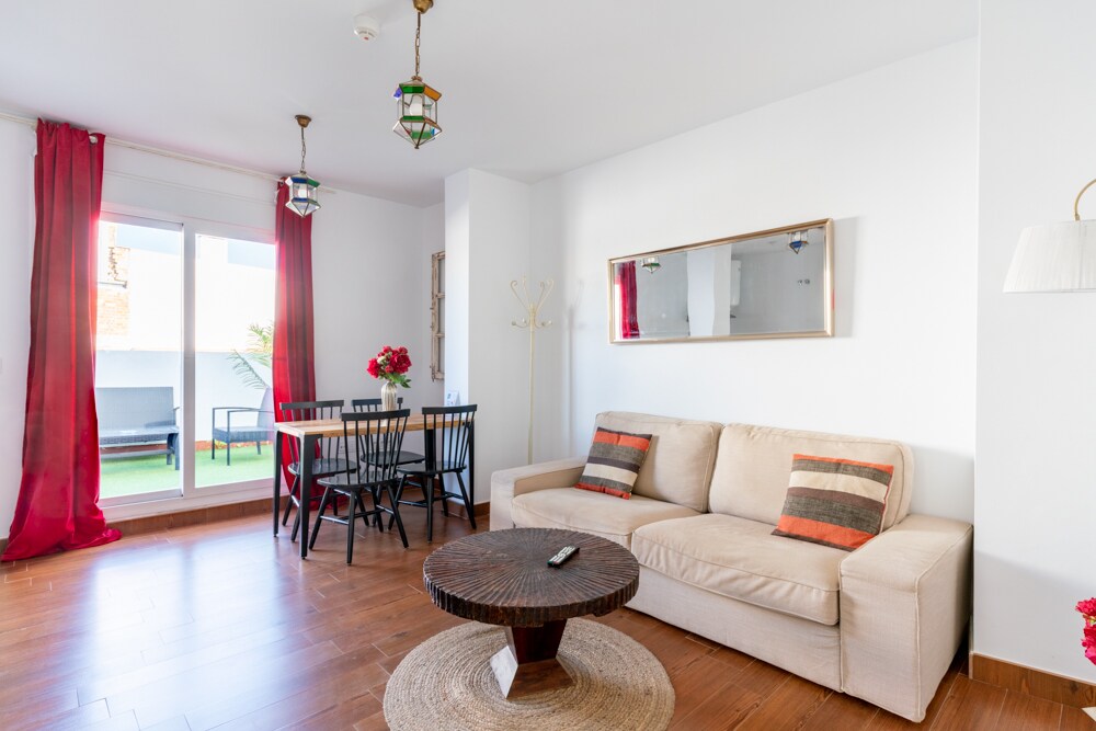 Apartamento de un dormitorio moderno y luminoso, con posibilidad de cama doble o dos camas individuales. Tiene un baño con secador de pelo y bañera, en su acogedor salón tiene un sofá cama doble y una TV de 43’’. En su cocina tipo americana pueden encontrar todo el menaje necesario. Reformado y equipado en Mayo de 2020.