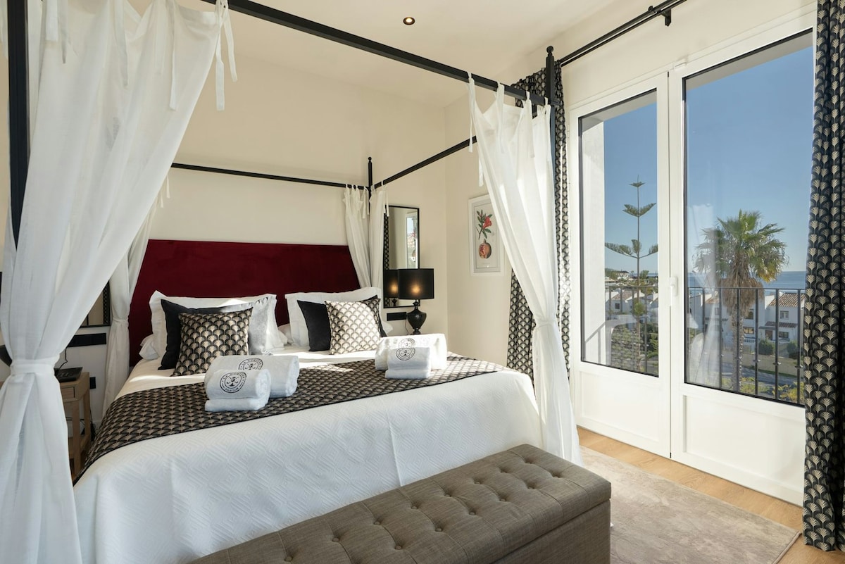 Manzanilla Hospedería Boutique is your hotel in Vejer. It's located on Calle Rosario in the old Jewish Quarter. Its name, like the names of the rooms, pays homage to the wines of Cádiz. Enjoy luxurious relaxation and sustainable interior design with wooden furniture crafted by Spanish artisans, designed by the Hannun brand. It's located a 15-minute drive from Sunshine Tour and Desehesa Montenmedio.