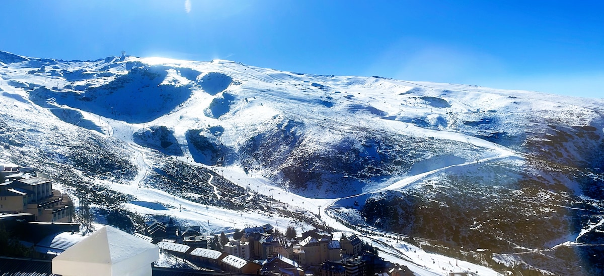 Apartamento con vistas espectaculares a pie de pistas Disfruta de Sierra Nevada desde un apartamento único en el edificio Impala, situado en plena Plaza de Pradollano y con acceso directo a las pistas y remontes Vistas increíbles a la montaña y a las pistas desde el salón y el dormitorio Ubicación imbatible: sal de casa y empieza a esquiar Apartamento luminoso y acogedor, con ventanales que llenan de luz cada estancia Edificio emblemático con remontes al lado, ideal para familias. Parking