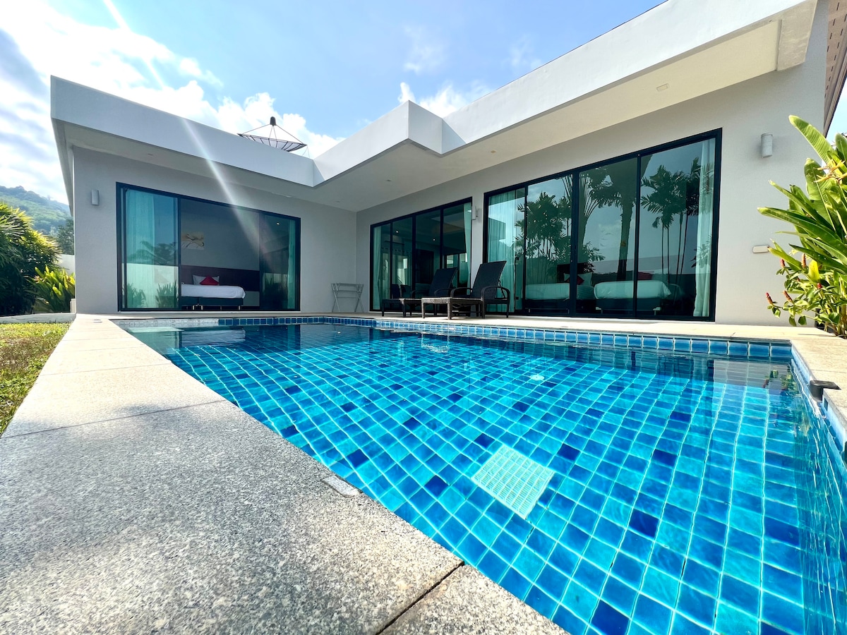 Nearly 500 square meters of independent swimming pool villa is 800 meters away from the sea, surrounded by supermarket, water park, 2 bedrooms and 3 bathrooms Offshore Pool Villa There are supermarkets around, the largest water park in Phuket The spacious kitchen allows you to enjoy your own delicious food