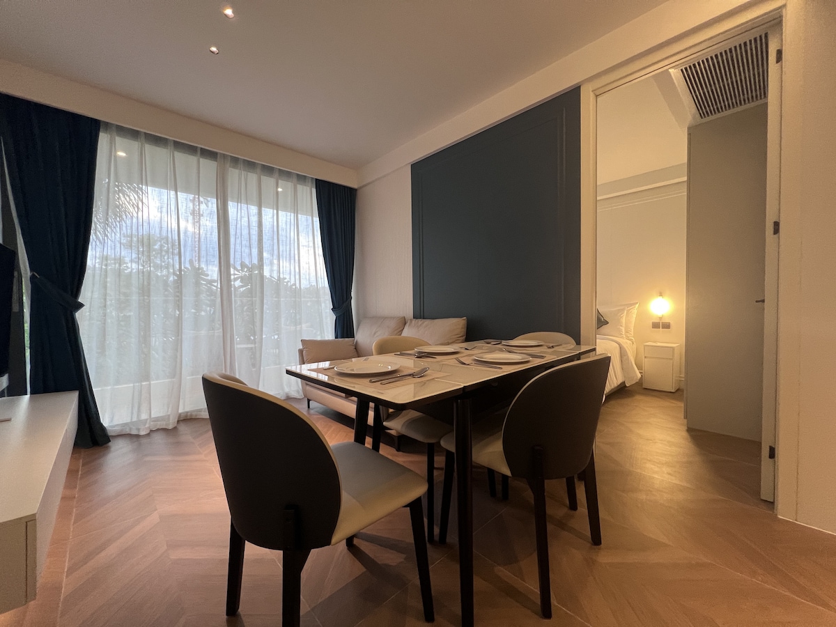 Stay at our 1-bedroom apartment in Laguna Phuket, Bang Tao, where style meets serenity. This 65m2 gem offers a unique blend of comfort and aesthetics, complemented by a unique golf course and view. Just a 10-minute walk from the beach, this bright and thoughtfully designed space invites you to unwind in a tranquil setting. Immerse yourself in the charm of Laguna Phuket and enjoy a perfect getaway in proximity to Boat Avenue, a vibrant hub with shops and restaurants. Your perfect escape awaits.