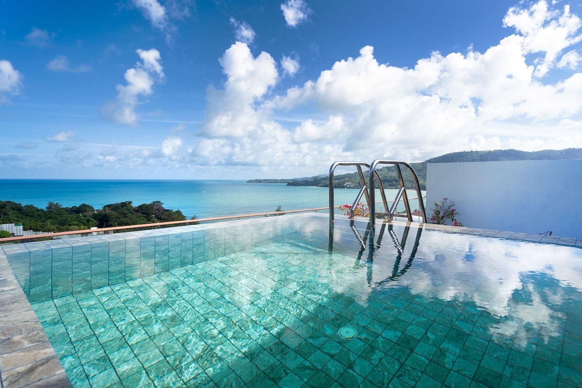顶楼私人泳池 无敌海景两卧公寓 ,靠近kamala海滩 A82