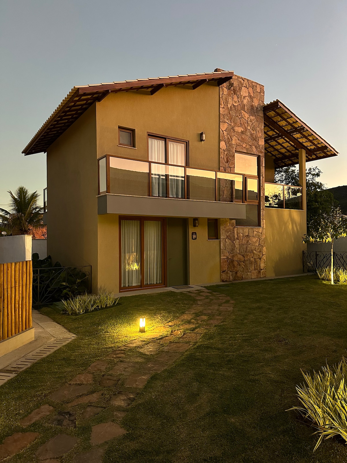 Divirta-se com toda a família e amigos neste lindíssimo village no centro de Mucugê! Lugar cheio de estilo e decorado com móveis e eletrodomésticos de primeira linha! O novíssimo village tem uma localização espetacular e a pé pôde-se ir para restaurantes e praças! O jardim privativo tem uma deliciosa rede, 88m2 de gramado e churrasqueira!