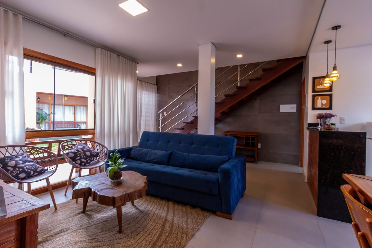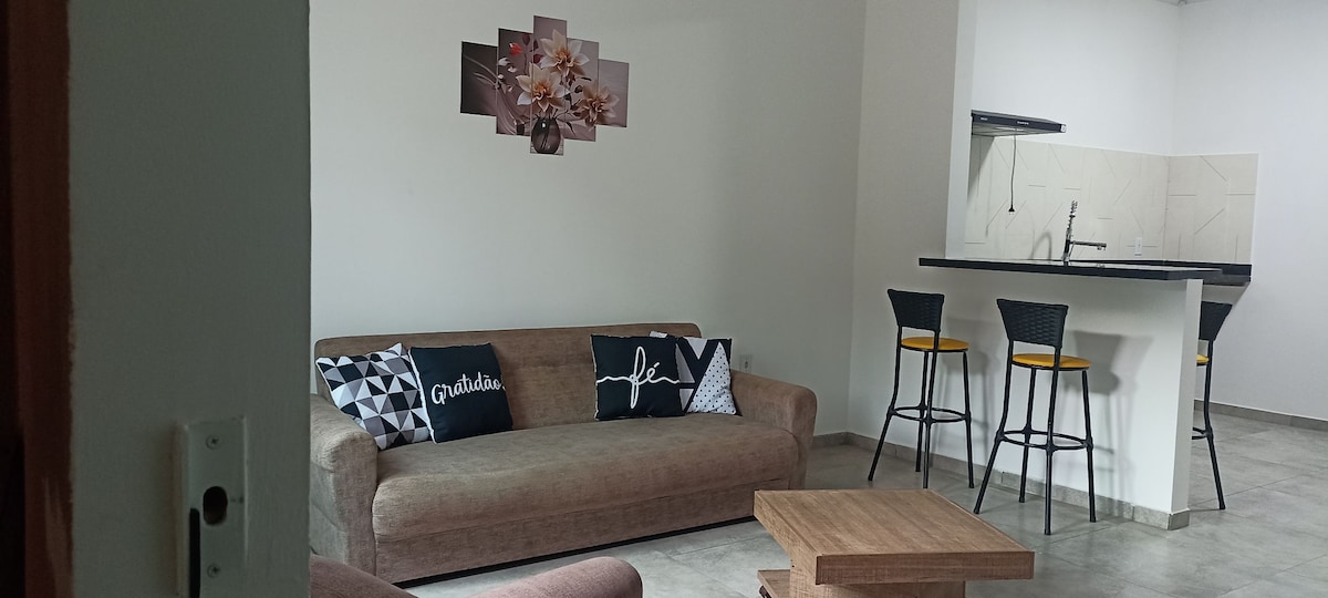 Curta uma experiência elegante neste lugar bem-localizado, a 200m do centrinho de Mucugê. - Sala conjugada com a cozinha e varanda, com grandes portas de vidro para deixar entrar muita luz e vista das montanhas. - 1 suíte equipada com ar-condicionado, ventilador e camas box. - Wi-fi, Netflix e Prime Vídeo disponíveis. - Estacionamento privativo com 1 vaga coberta. - Máquina Nespresso, cooktop, sanduicheira etc.