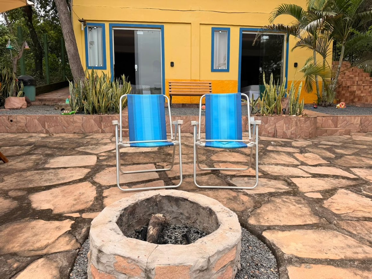 The house is built within a plot of 2,200 m² of native vegetation and fruit trees. It is located in the upper part of the city, in an urban area, with access by illuminated street and distant only 5 minutes by walking from the center of the city. The interior spaces are large and well decorated, equipped kitchen, hammocks, bath linens and bed. They are two suites and one dormitory in the mezzanine. Quiet, safe place and easy access.