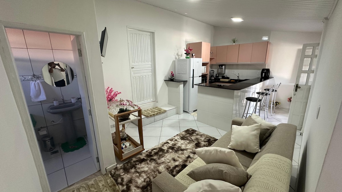 Nosso studio aconchegante e mega prático fica localizado em uma área privilegiada pela natureza, confortável e bem equipado para sua estadia. Ficamos na Ladeira do Ribeirão do Meio, a apenas 10min andando do centro e 5 minutos andando até a entrada das trilhas do Ribeirão do Meio e Cachoeira do Sossego. Além do nosso espaço físico, estamos disponíveis para te ajudar no que for preciso para que você aproveite muito bem a sua estadia em todos os aspectos. • Nosso Insta: @casamareladoribeirao