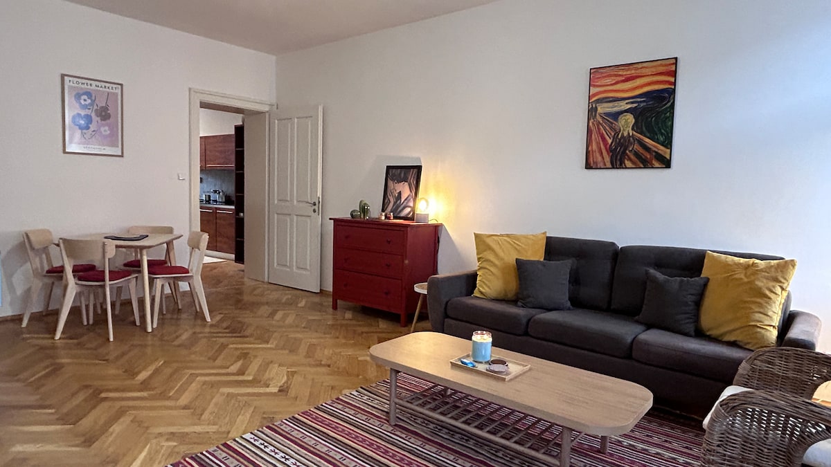 3BR Chic Haven: AC, Terrace & Hot Tub in Center