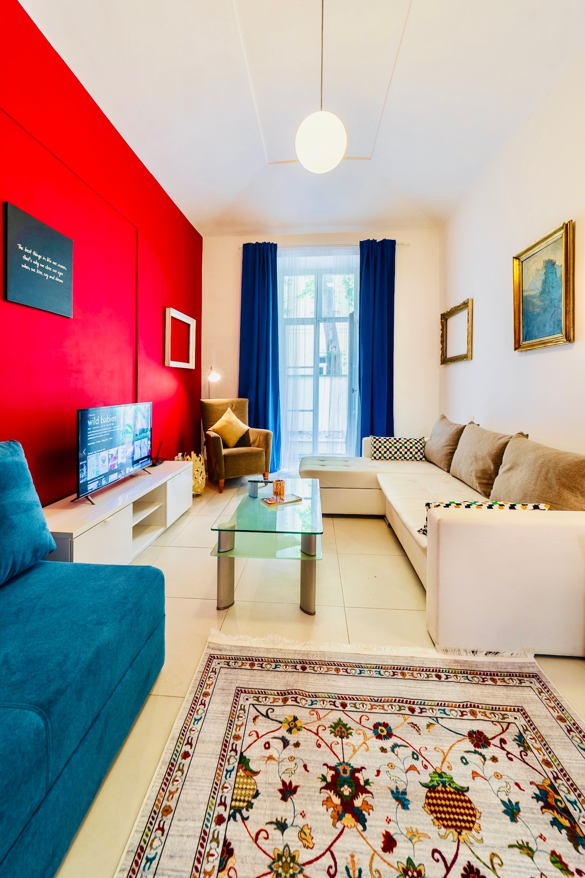 Welcome to our newly reconstructed design apartment nestled in a charming 19th-century building. This stylish haven offers comfortable accommodation for up to 6 guests, featuring 2 beautifully appointed bedrooms. The master bedroom boasts a luxurious king-size bed, while the second bedroom offers two versatile single beds that can be easily combined. The spacious living room complements the sleeping arrangements with a cozy fold-down sofa for an additional 2 guests.