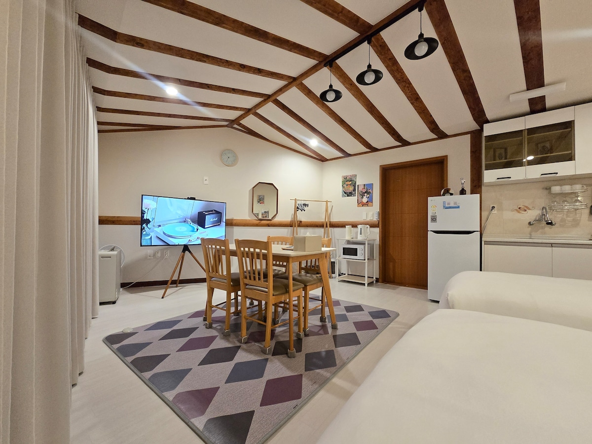 서귀포 안덕면 화순리 마을안에 위치한 두그루하우스는 따뜻하고 아늑한 숙소입니다. 방1(2층침대+더블침대),방2(퀸침대1), 욕실1개.거실.주방있는 1층 패밀리룸입니다. ** 게스트 인원수 정확히 입력해주세요.** *세탁기,정수기 있습니다 도보거리에 화순금모래해변과 올레10코스 시작점이라 해변 맨발걷기, 산책하기도 낚시하기도 좋습니다. 코사마트,한가네식당.할망밥상,화순별곡,비밀역,빨래방 등 생활편의 시설이 도보권으로 가능합니다. 단독주택 이라 내집같이 편안하고 조용히 힐링할수 있는 곳입니다. * 바베큐 안됩니다.❌️🚭 * 개인위생상 치약.칫솔,샤워타월, 양념류는 준비되어있지 않습니다❌️ *주차장은 따로 없습니다. 집 아랫쪽 공터에 주차가능합니다.(무료) (도보 40초) 자동차로 🚗 *산방산.용머리해안~5분 *중문관광단지.송악산.마라도항~10분 *매일올레시장,외돌개~30분 *성산일출봉,우도~1시간30분. *금능.협재해변~35분. *제주공항 50분 입니다