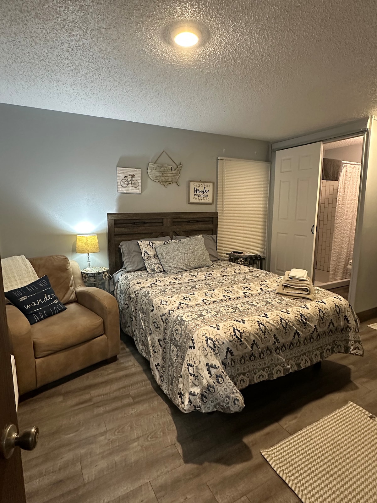 Come stay in a cozy private suite; walking distance from main street shopping, restaurant/coffee shop, Carnegie library and more! Suite offers a queen size adjustable bed, flat screen tv, microwave, dishes and apartment size refrigerator/freezer for all your snacks, treats, and drinks. Unit offers shared washer dryer available for use. (NON-SMOKING UNIT; EVIDENCE OF SMOKE OR VAPE WILL RESULT IN $150 fee. If you do smoke please do so away from doorway in grassy areas)