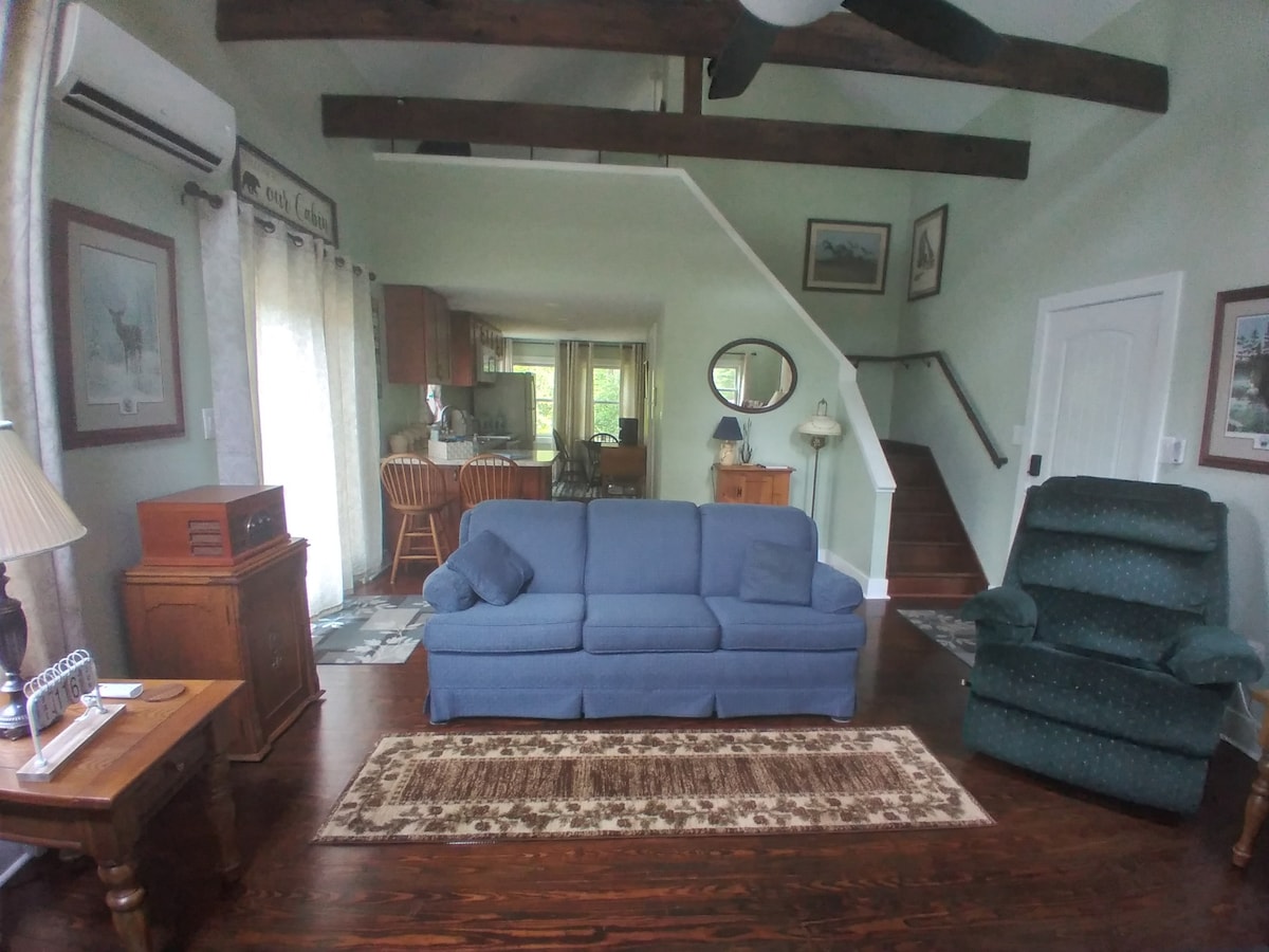 The cabin has been entirely built by the owner, Doris, (with help from family and friends) from reclaimed and local salvaged materials. Located on a beautiful Kentucky Scenic byway, on a working farm, the cabin is only 15 minutes from Wild Turkey Distillery, the town of Versailles , golf courses, dining, shopping, wineries and other major distilleries. 35 minutes from Keeneland race course, downtown Lexington, UK, Rupp Arena, the Horse Park and more .