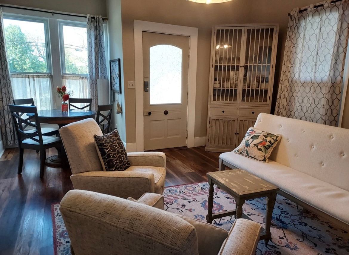 The Homestead: this newly renovated home is stylish and centrally located. Situated in the heart of Downtown Lawrenceburg, just minutes from local shops, the county park, and a short drive to several Bourbon Distilleries! This home is great for groups and families looking to get away- with 3 beds and a pull out couch to accommodate your party's size. Upon entry you'll find a fully stocked kitchen with a large island for meal prep, a charming living room with Smart TV tech, and a fire pit. Cheers