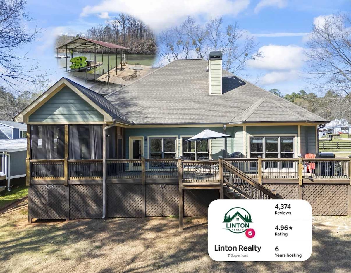 Looking for a Lake Hartwell getaway! This spacious lakefront home has room for everyone! Spend your mornings relaxing in the screened-in porch with a cup of coffee. Afternoons can be enjoyed down by the dock where you can sunbathe, kayak or just float around. Fish, dock your boat or jet ski. Public boat ramps are just a short drive away. Relax by the outdoor fire pit or enjoy the WOOD BURNING fireplace in the living room off a spacious kitchen and dining room. A great way to spend a vacation.
