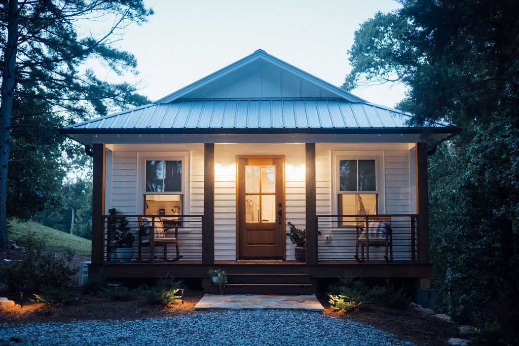 Couples retreat located 6 miles from downtown Greenville and the Swamp Rabbit Trail in a comfortable country setting. Wake up to a beautiful woods view through a large bay window and wildlife that surrounds the cottage (deer, birds and squirrels). Experience the beauty of the country in the city! Enjoy the eclectic collection of art and design in this cute little cottage.