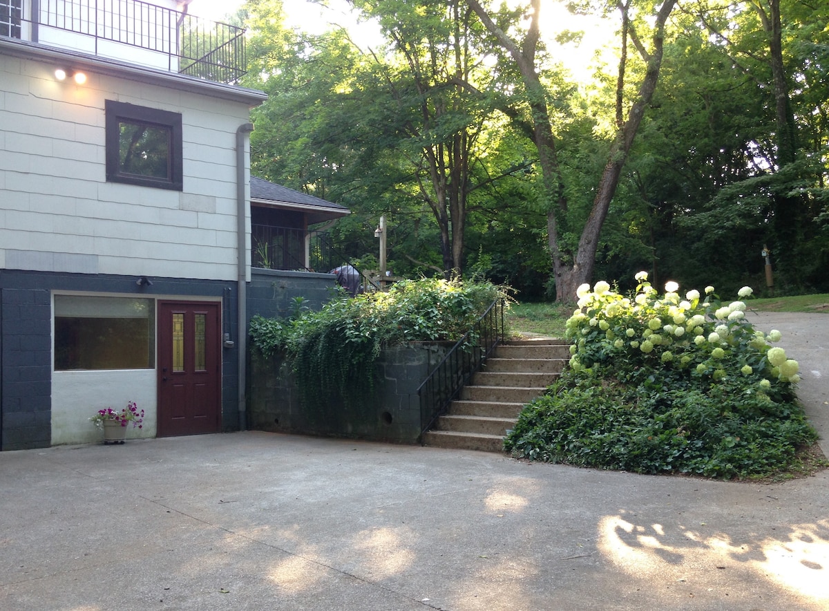 The Tuscan Wine Cellar was designed to be a peaceful retreat in the quiet, safe, cozy Bearden neighborhood of Knoxville. 10 minutes from downtown, 5 minutes from I-40. Great for business stays/solo travelers/families. 24 hour secure check-in available. A basement apartment with ground floor entry and a separate entrance, the space sleeps up to 5. Private parking at no cost to guests.