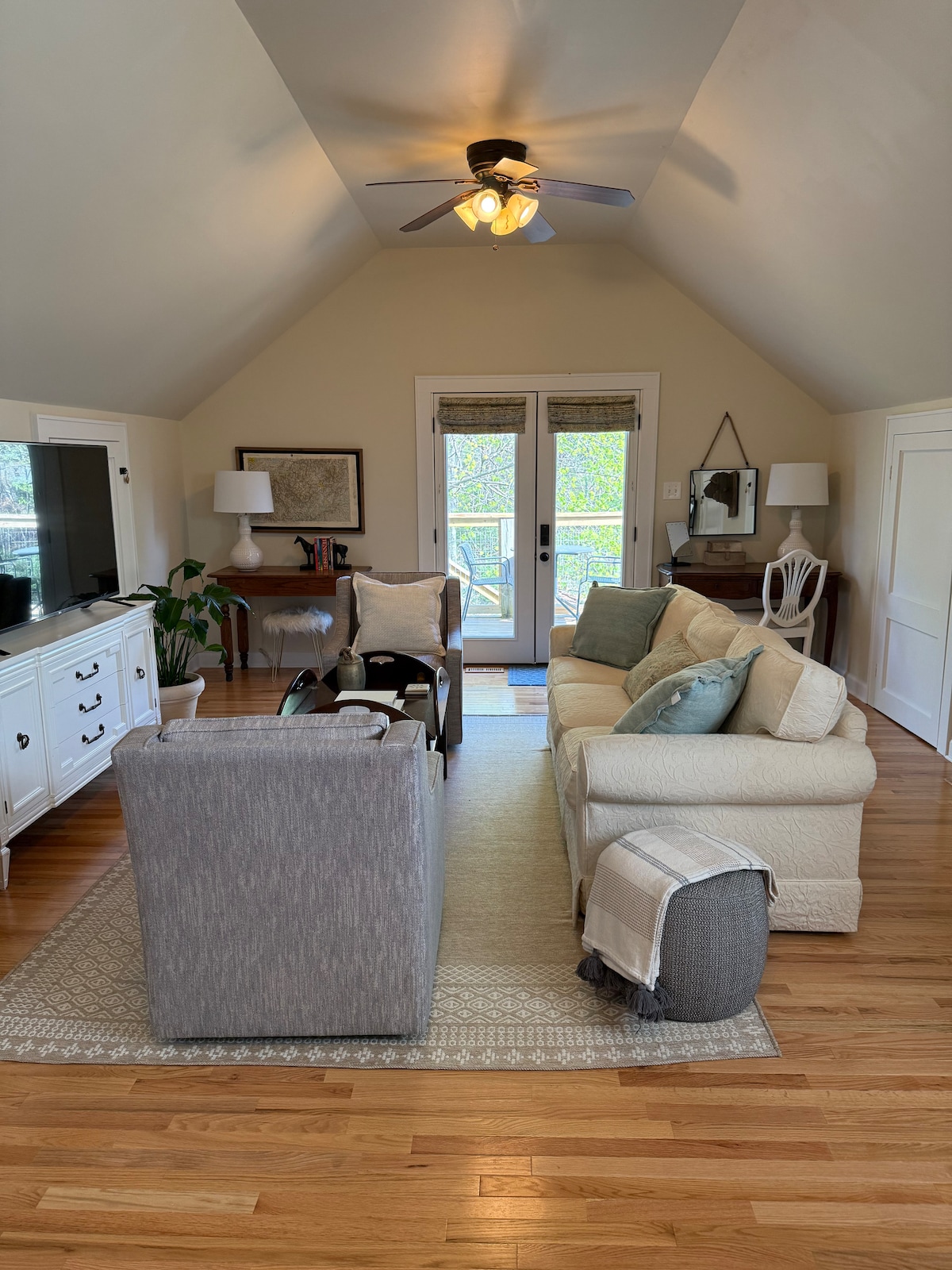 Plenty of space and privacy in this cottage over looking the fields and pond. Sit back and relax watching the horses and goats graze. Located minutes away from Oak Ridge/Clinton/Knoxville. Melton Hill lake has outdoor activities, restaurant & nice walking trail and is 10 minutes away. University of TN is 23 minutes away and Oak Ridge is 13 minutes. The 16’ ceilings make this 480 sq. ft. space feel enormous. The Kitchen has a full size refrigerator, keurig, microwave & convection oven combo.