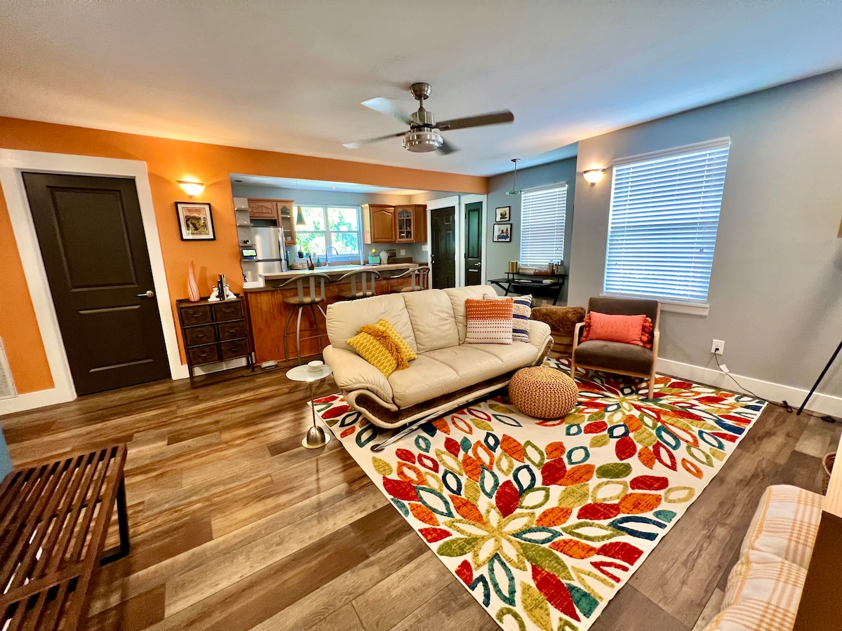 Studio apartment with lofted queen fully-foam mattress, full kitchen with open concept living space in gorgeous historic neighborhood and mile-long riverside park 2 blocks from home, 5 minute uber ride to downtown Knoxville, 1 block from an amazing restaurant (Plaid Apron) and coffee shop (Treetop Coffee), dog friendly with fenced in backyard, and large back deck with hot tub! Close to the University of Tennessee campus, World's Fair Park and Downtown Knoxville.