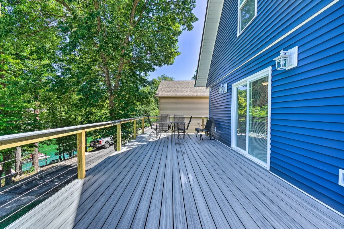 Recently renovated, A Shore Thing has a gentle, no-steps slope to the main channel shoreline of Cove Creek on Norris Lake. This 2.5-story contemporary lakehouse getaway offers 4 bedrooms (including a huge bunkroom – a favorite with the kids) and 2.5 baths. Game room with ping pong, pool table, and foosball. Lakefront with dock space and two jetski ports. Hot tub and fire pit, gas burning fireplace for fall and winter. Lots of outdoor space to enjoy amazing lakefront views.