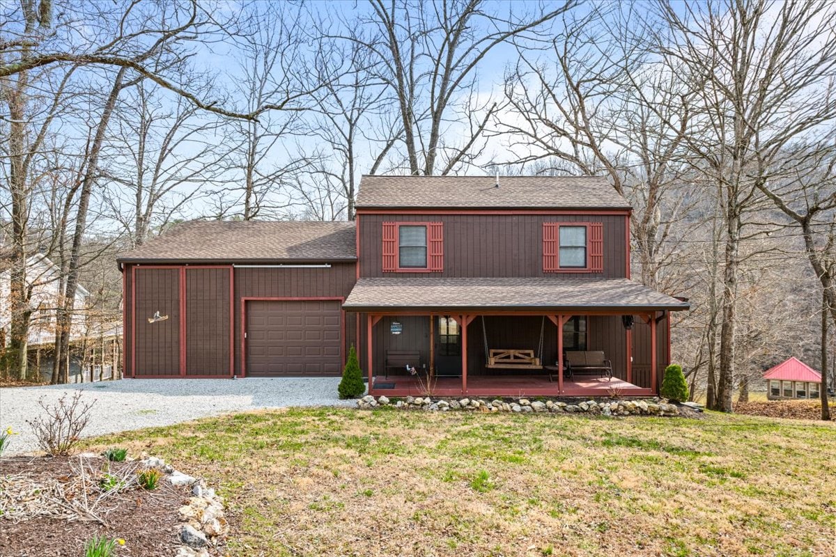 Beautiful 5 BR/3 Ba home in stunning surroundings! Enjoy the lakefront, firepit, hot tub and large, welcoming interior. Well-equipped kitchen has a fully-stocked coffee bar and a dining table large enough for a crowd! Basement has foosball, air hockey, and a stand-alone video game console. The dock is equipped with paddleboards and canoe. Quiet family neighborhood (no loud parties, please). Perfect for families and small groups. Close to Knoxville and Oak Ridge. Plenty of parking.