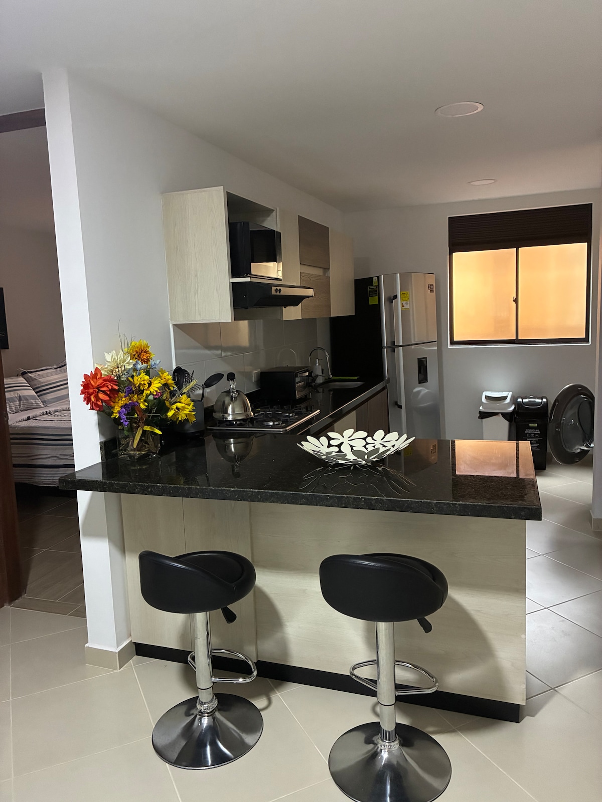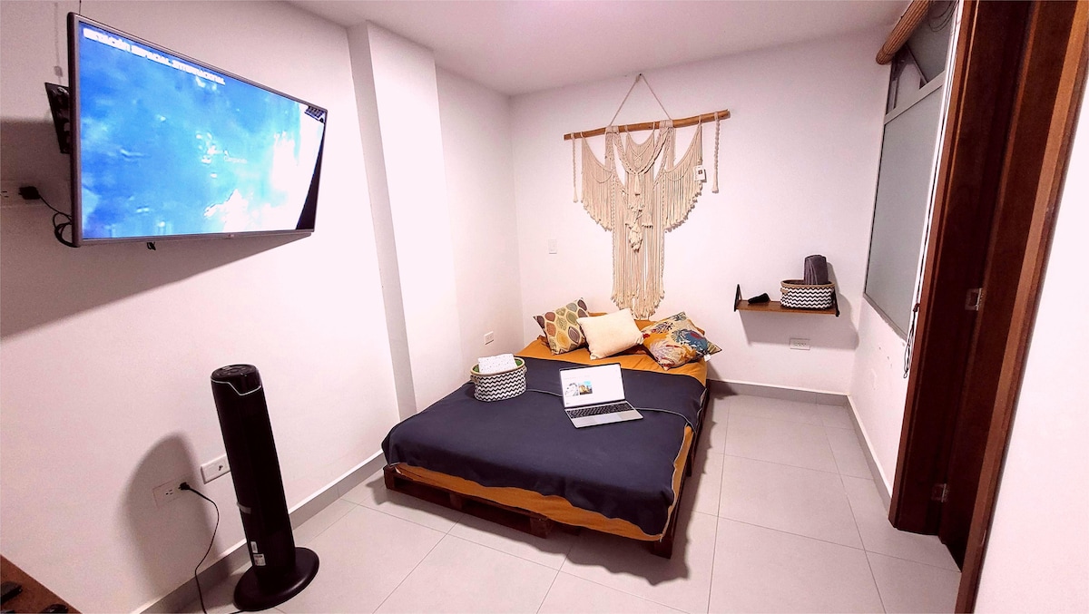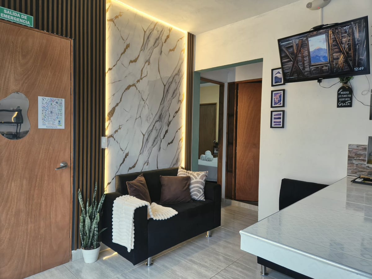 ¡Bienvenido a tu hogar lejos de casa! Este apartamento de dos habitaciones, bellamente diseñado, ofrece la combinación ideal de confort, estilo y conveniencia. Ubicado en una calle tranquila y segura, a solo tres cuadras del parque principal. Nuestro moderno espacio está meticulosamente equipado con todo lo que necesitas para una estancia relajante y placentera.
