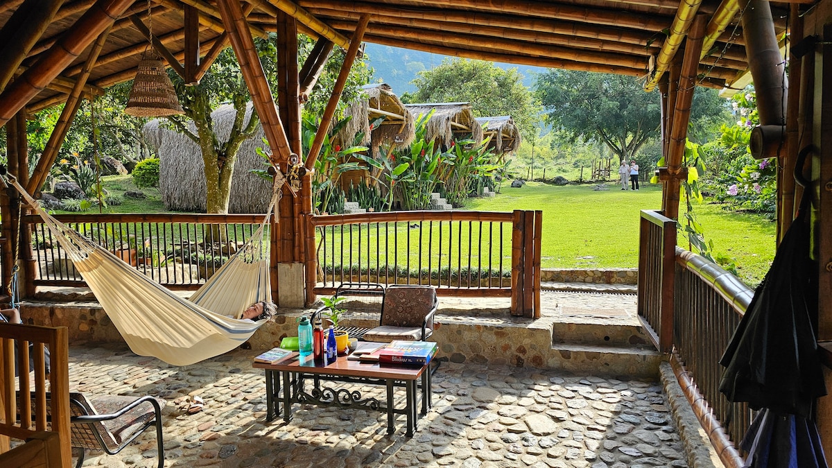 It is a private Cabaña for couples built on a 20.000m2 beautiful private land. Built in bambu and located on the tourist corridor of Jardìn, Cabaña is close to many Jardìn's places of interest : la Cascada de Amor, Charco corazòn, el tunel de murcielagos and la Garrucha. The panoramic view from the Cabaña is breathtaking and there is also a malla catamaran on which one can lie and enjoy nature. Birdwatching and walking down the path to the river are favorite