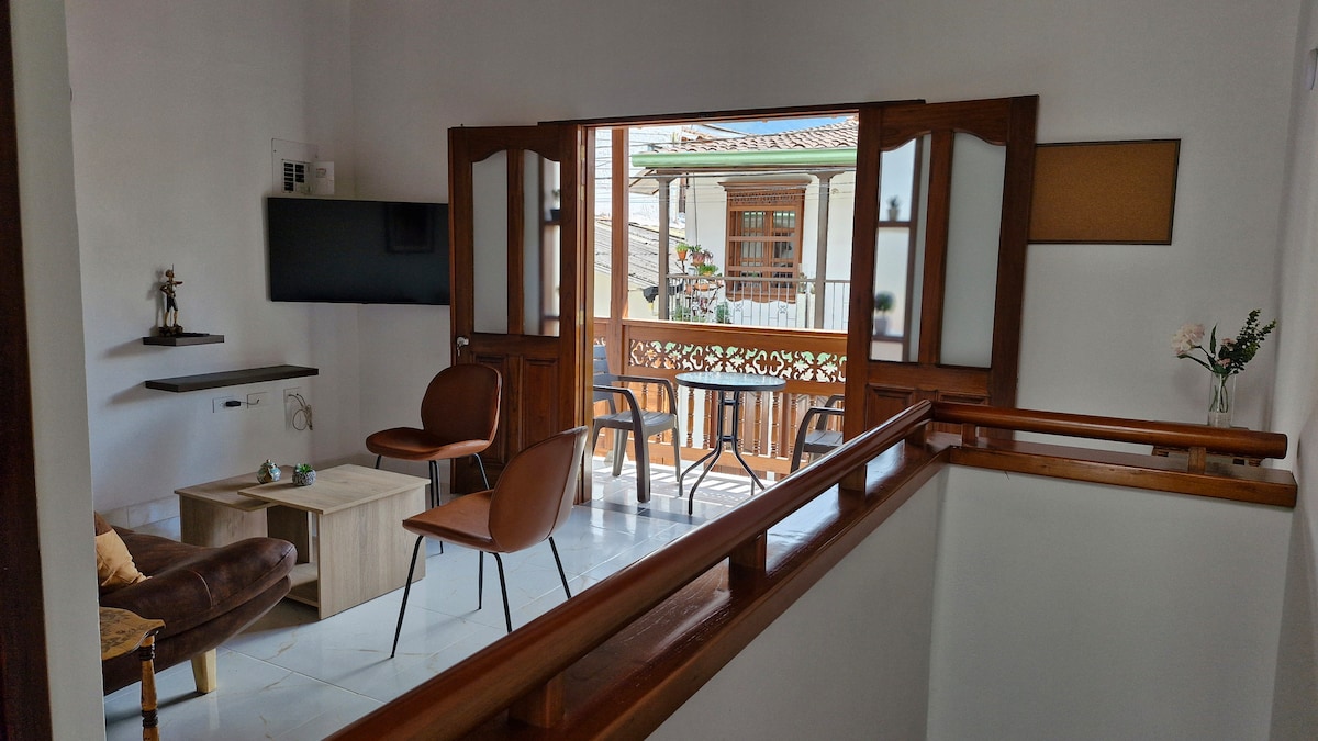 Mi pequeño lugar es un segundo piso:tiene un ambiente tranquilo,iluminado con balcónes y vistas hermosas a nuestras montañas.los invito a conocer mi espacio. Muy importante , debo especificar a todos nuestros huéspedes que desde la fecha 8 de julio del 2025 hasta finales de octubre, estará la calle con mucho tránsito vehicular ya que la vía principal tiene inconvenientes y estará en reparaciones .