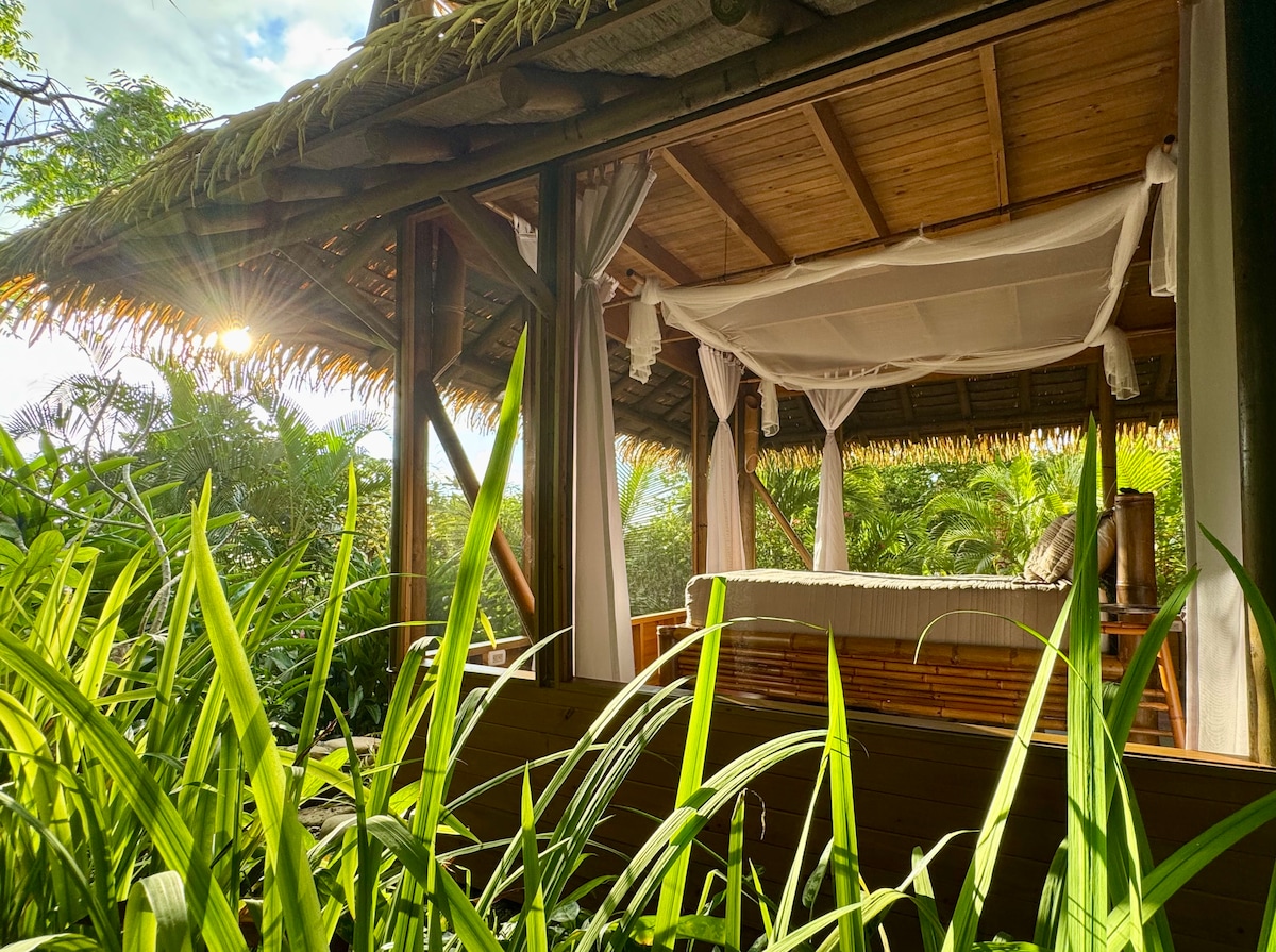 Spectacular open-air bungalow / treehouse - wildlife, surfer & yoga paradise! Wake up to the call of the birds, howler monkeys and waves crashing. Enjoy the day and night with sounds, scents and sights of the jungle & ocean. Fall in love with the amazing view! You can look forward to a unique outdoor living experience with wildlife encounters, private yoga with a 360° ocean & jungle view, and great surf, only 3min walk to the beach of Punta Banco and 15min by car to Pavones.