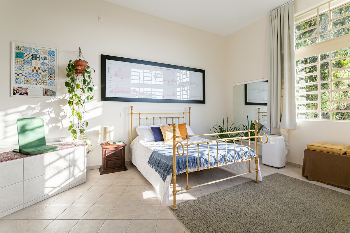 Espaço privativo e totalmente independente de 130 m2 em tranquila área de preservação. O esplendoroso pôr do sol de Cacupé é um espetáculo que acontece todos os dias para os hóspedes. O espaço conta com 2 quartos, 1 banheiro, garagem coberta para 2 carros e copa simplificada (frigobar, micro-ondas, chaleiras, air fryer, pratos, copos e talheres). *ATENÇÃO*: não tem sala de estar e nem cozinha completa (apenas uma copa onde não é possível cozinhar). Esse espaço não dá acesso à piscina.