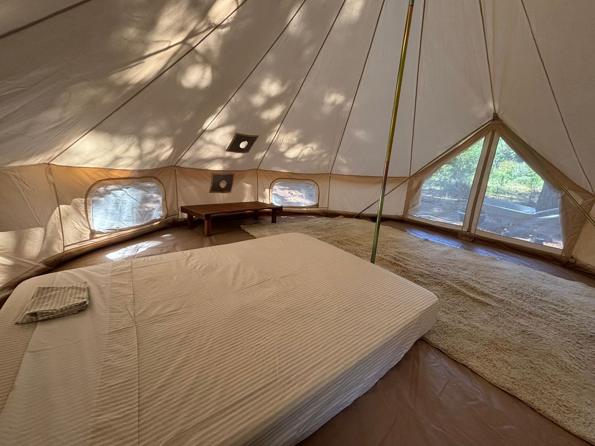 Glamping en bosque de pinos con desayuno épico incluido. Carpa Tipi (Bell Tent) de 5 m de diámetro con cama queen, electricidad, luz cálida y detalles únicos de Wobibi. Ideal para parejas, familias, grupos pequeños o viajeros solos (30% off). Un refugio íntimo y artístico a 10 min en auto de Playa Grande, Laguna Negra y Parque Santa Teresa. Naturaleza, comodidad y una experiencia única en Wobibi. Es un espacio creado para descansar profundo y disfrutar de la magia simple de la vida.